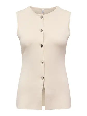 The Libby knitted vest features sleek sleeveless silhouette with silver organic shaped buttons for a refined finish. It perfect to wear solo or over a T-Shirt or blouse. A staple you'll reach for season after season.