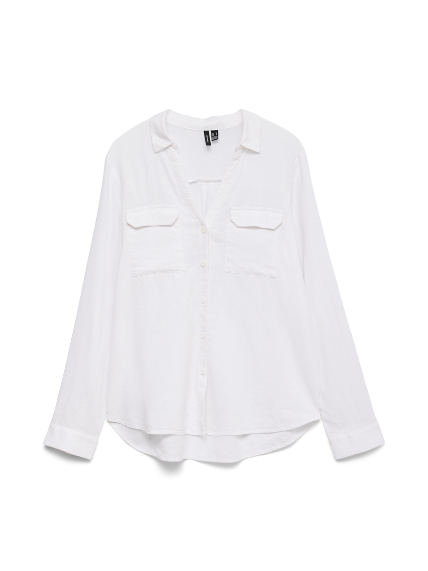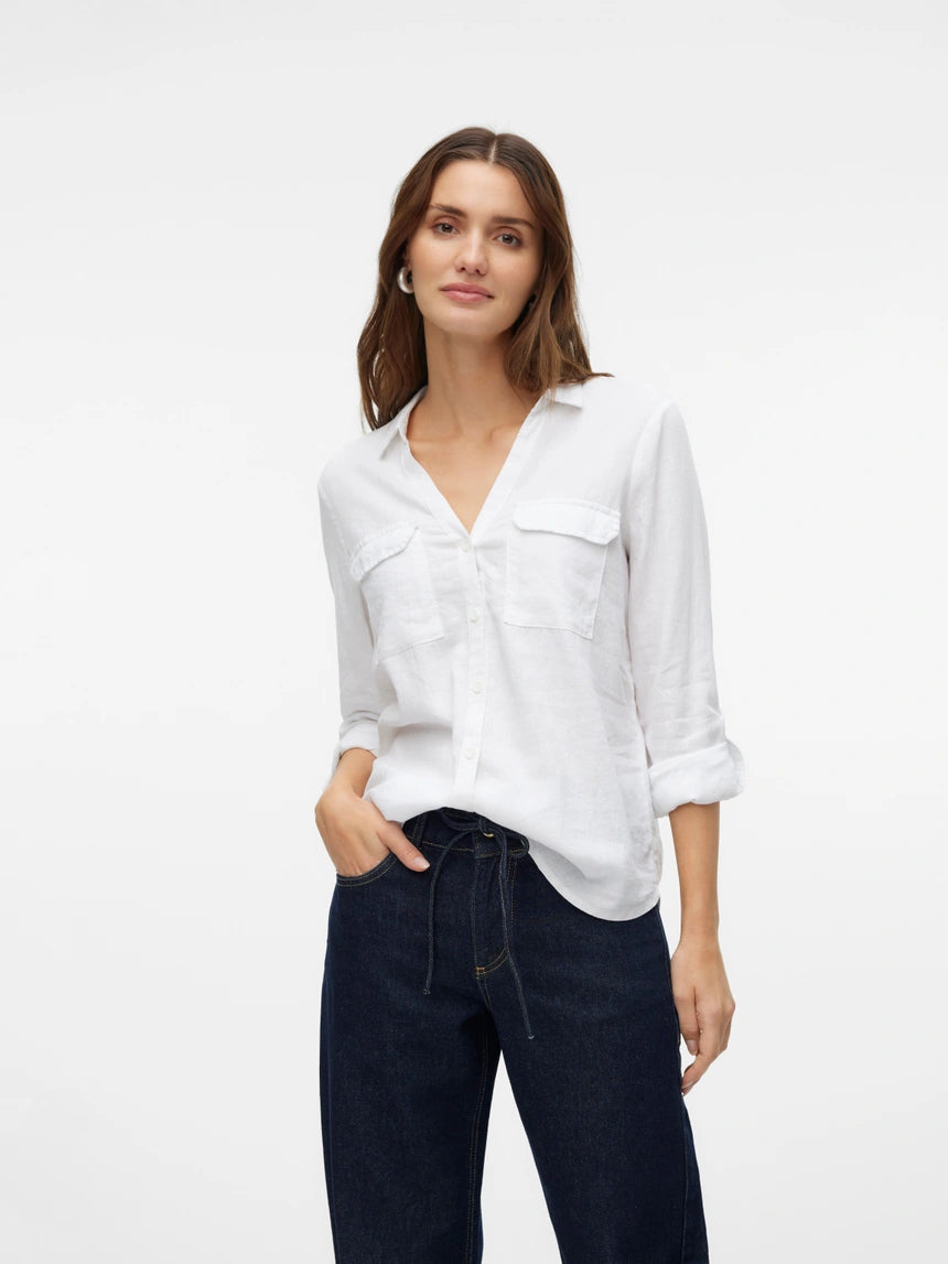 This stunning shirt will be your go to this Spring\Summer. Crafted from a viscose, linen blend fabric. Long sleeves front patch pockets, ideal to be worn on its own or layered with a knitted tank.